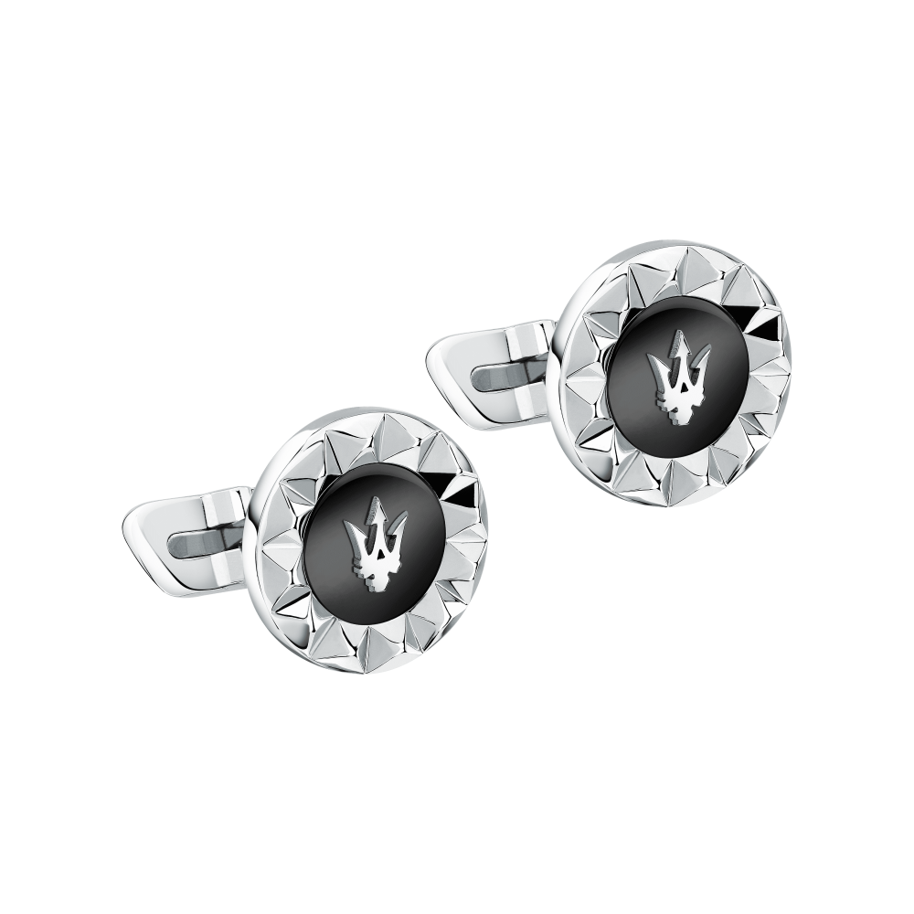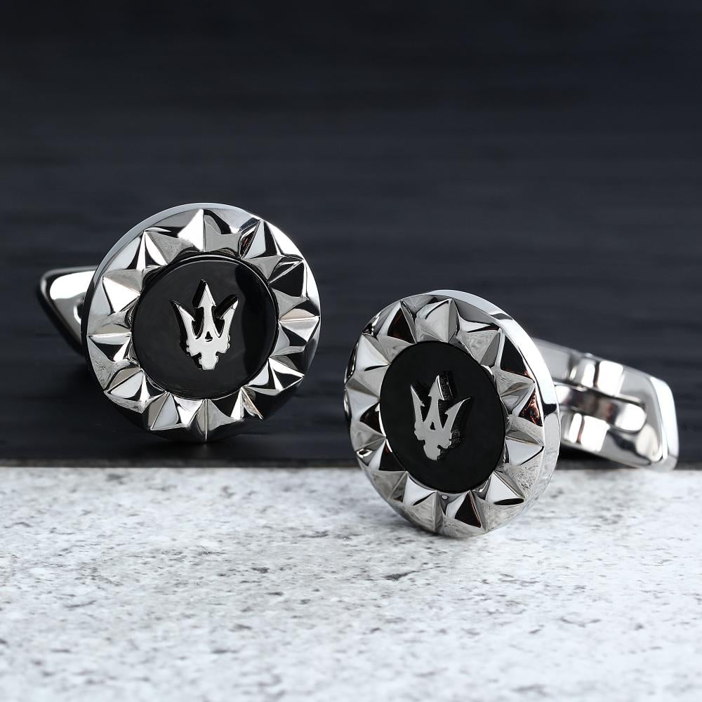 كبك ثوب رجالي من مازيراتي مصنوع من مادة عالية الجودة، يتميز كبك ماركة مازيراتي بشكل دائري ذو إطار فضي مزخرف بشكل دقيق وأنيق ووجه أسود اللون يتوسطه شعار العلامة التجارية الفاخرة باللون الفضي