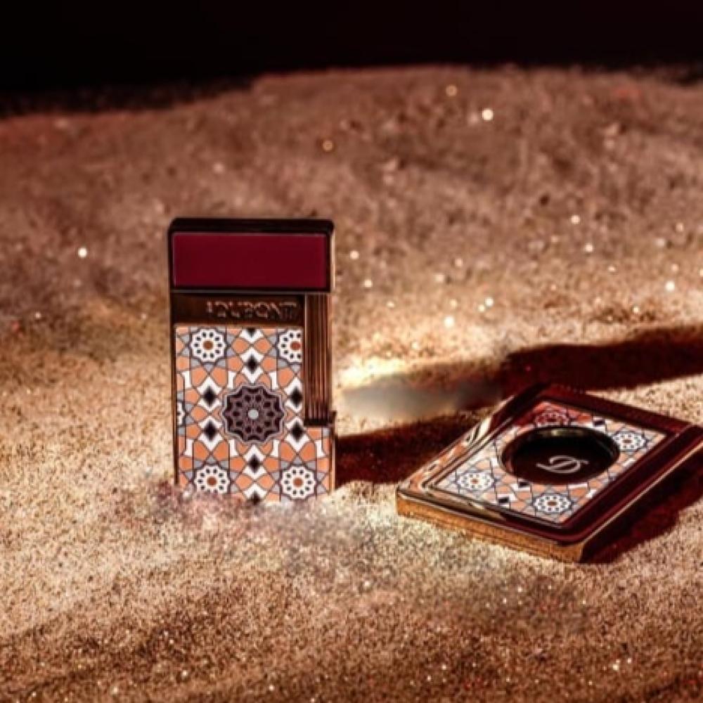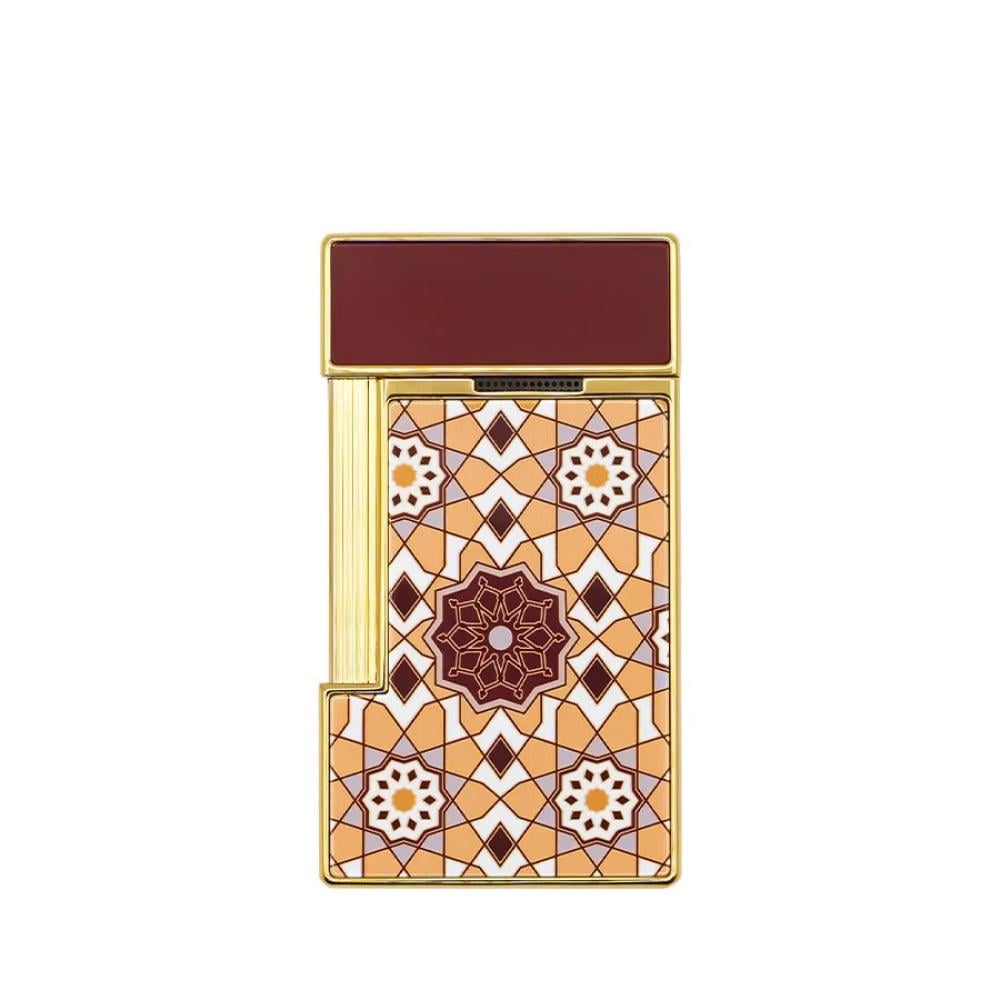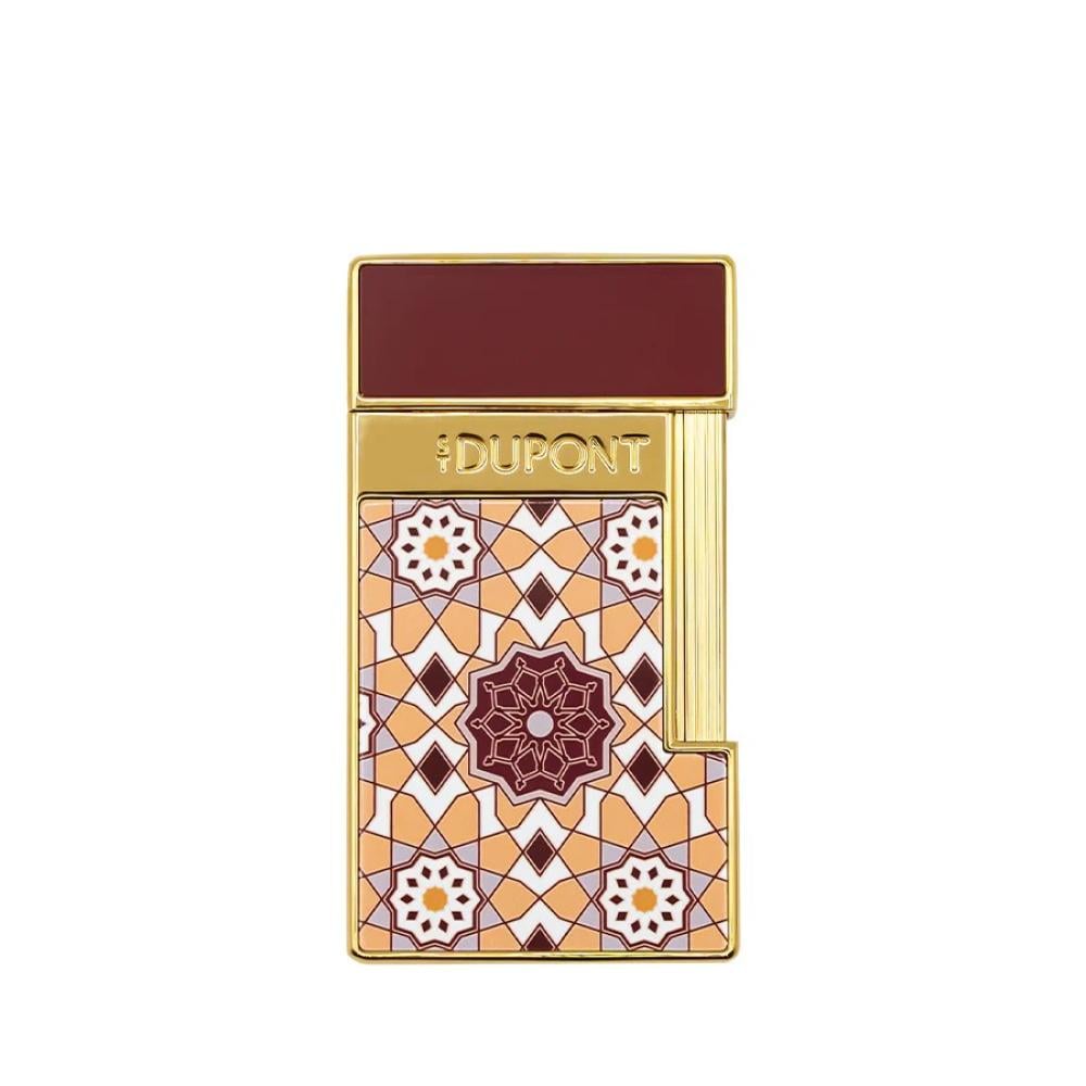 ولاعة من اس تي ديبون الرجالية باللون الذهبي . من مجموعة ألامبرا , المصممة حصرياً للشرق الاوسط . مستوحاة من روعة ألامبرا المعمارية , تجمع المجموعة الجديدة بين الفخامة والتراث في قطع خالدة , صغير و قوي مع ملمس مريح تماما .