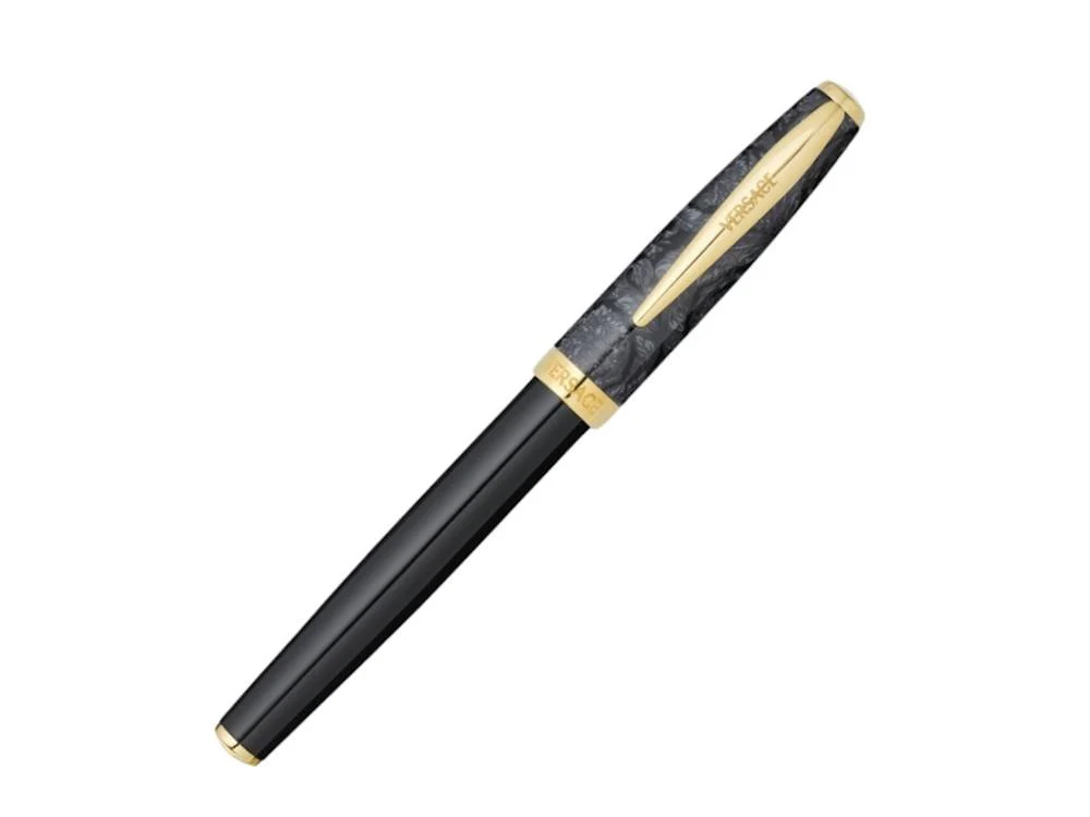 قلم فرزاتشي مصنوع من ستانلس ستيل باللون الاسود و والذهبي الفاتح الغطاء والجسم مصممان بنمط باروكو