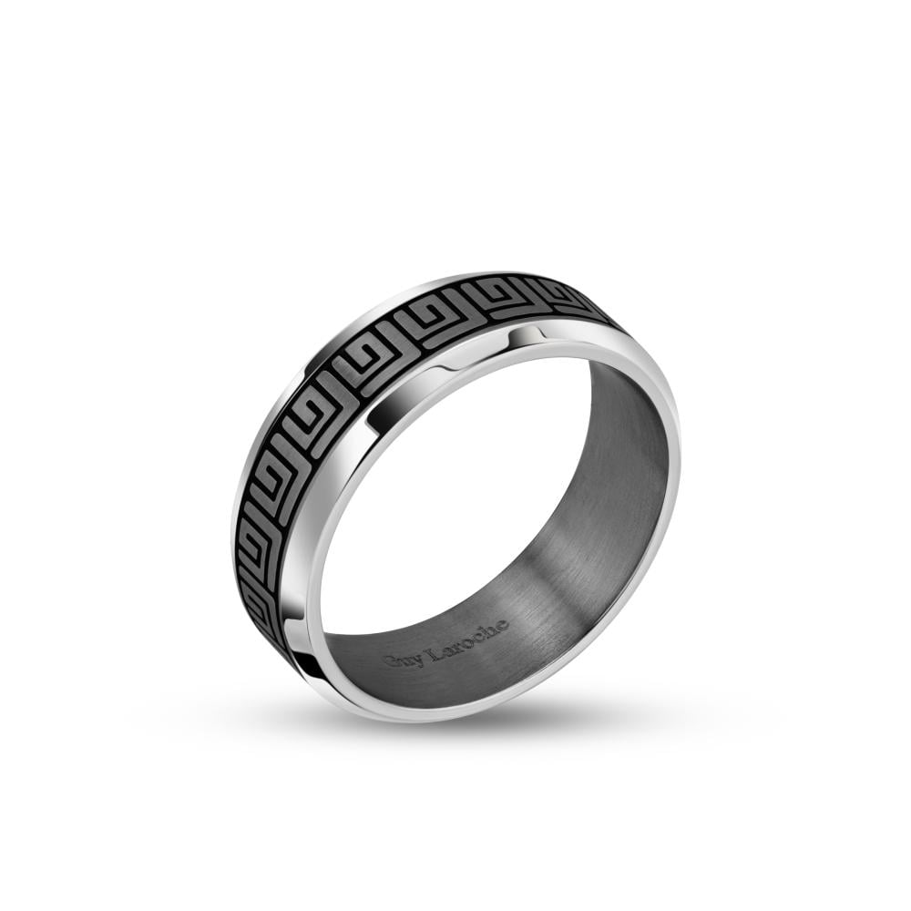 خاتم جي لاروش تشارلي ستانلس ستيل لون أسود مع طبقة المينا