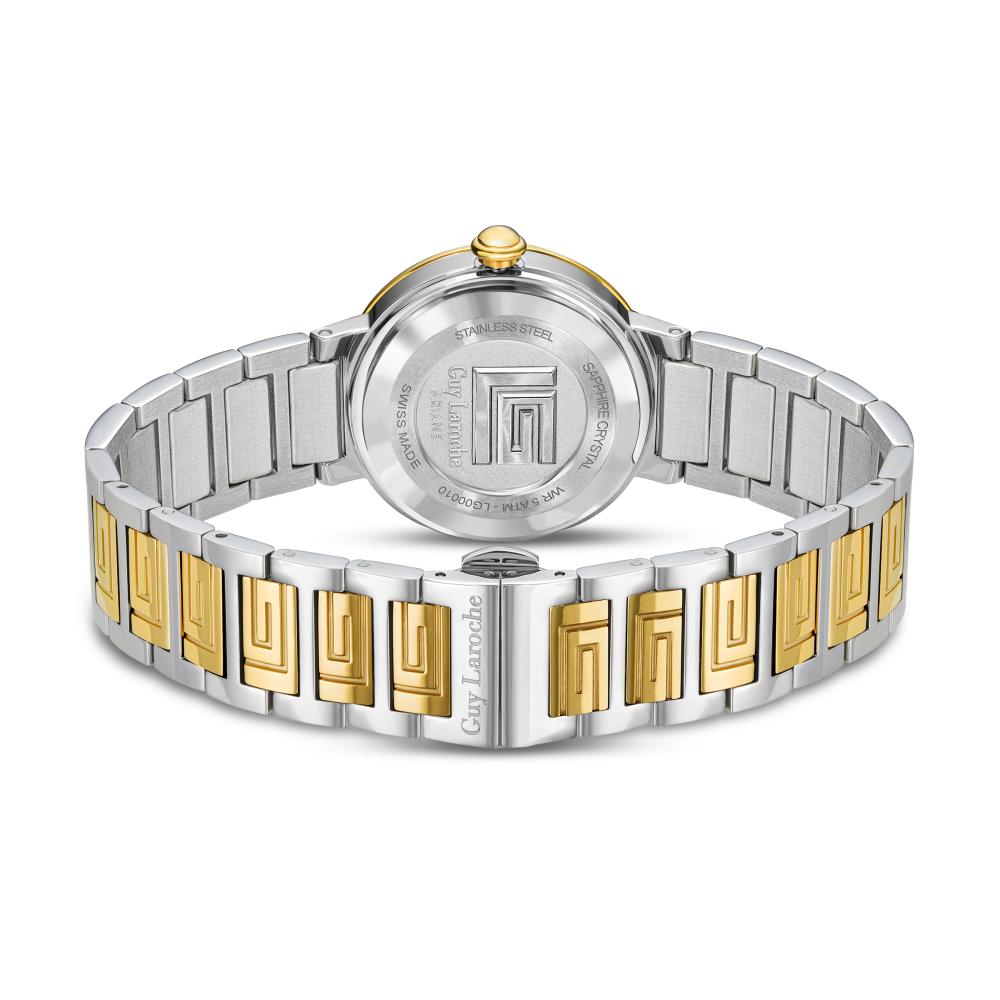 ساعة اريان النسائية من جي لاروش , تلتقي الأناقة الخالدة مع التصميم الحديث في ساعة أريان الرائعة من جاي لاروش. إنها مزيج مثالي بين التصميم الحديث والأسلوب الخالد، وتتميز بـ 12 ماسة عند علامات الساعات ومينا من عرق اللؤلؤ، مما يجعلها تجسيدًا للرقي والفخامة.
