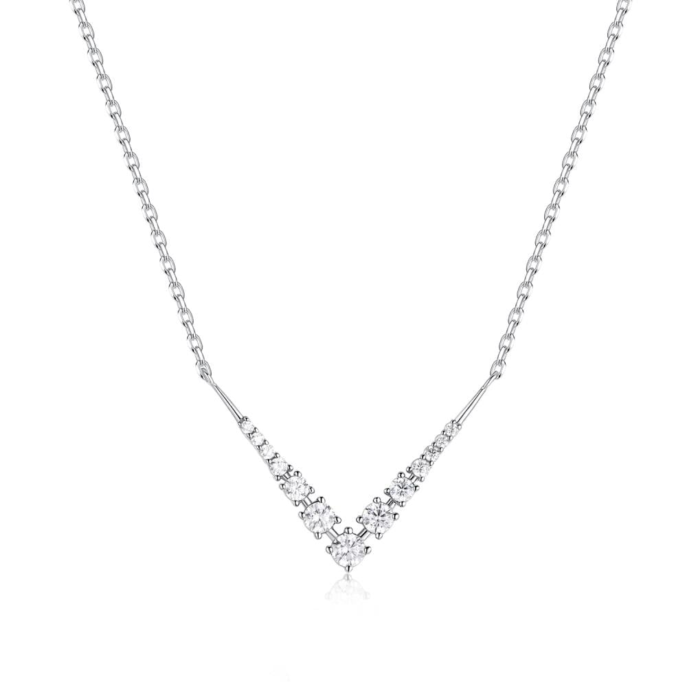 سلسال نسائي من ماركة قروف مميزة بسلسلة فضية مصنوعة من الفضة 925 تميّزي بإطلالة تجمع بين البساطة والرقي مع هذه القلادة الفاخرة المصممة على شكل حرف V، والمزينة بأحجار براقة متدرجة الحجم تعكس الضوء بشكل يخطف الأنظار , تألقي بقطع فريدة من ماركة قروف لمناسباتك .