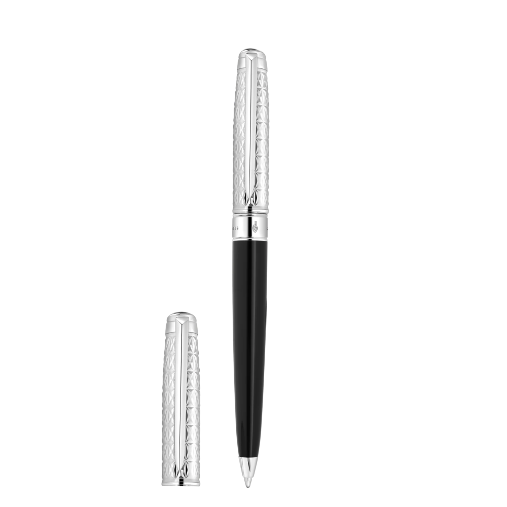 قلم إس.تي.دوبونت للرجال عبر عن أسلوبك. يتميز هذا القلم ذو الحجم المتوسط بتصميم جميل ونسب أكثر إحكاما ومزين بطلاء أسود طبيعي وتشطيبات من البلاديوم، ليصبح إكسسوارك المميز. تم تصميم أداة الكتابة هذه خصيصًا لعشاق الكتابة الباحثين عن التميز والراحة في الكتابة.