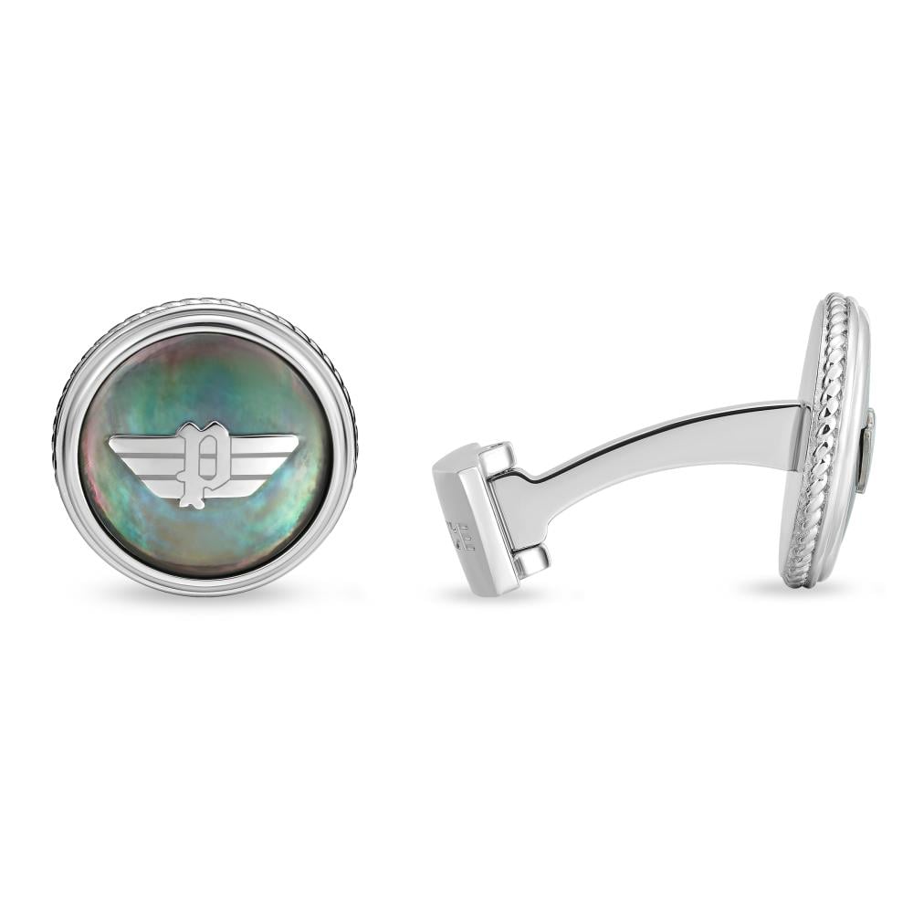 كبك ثوب رجالي بتصميم أنيق وعصري مصنوع من مادة عالية الجودة، يحمل كبك ماركة بوليس شكلًا دائريًا بنمط مخطط بلون فضي يضفي الرقي والجاذبية
