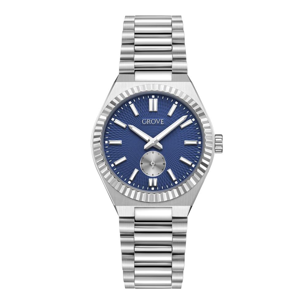 ساعة قروف الرجالية قطعة أنيقة تجمع بين الفخامة والرقي , مصممة بشكل عصري مميز مصنوعة من الفولاذ المقاوم للصدأ بتفاصيل تضفي طابع مميز لتكمل اناقة التصميم , مما يضيف لمسة راقية الى أي اطلالة .