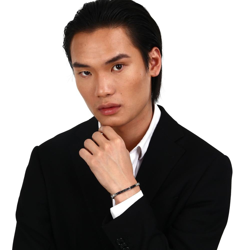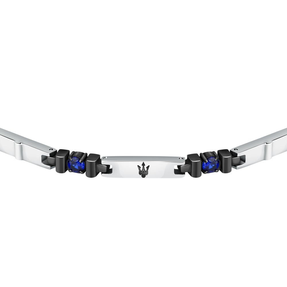 أسوارة مازيراتي رجالية مصنوعة من الستانلس ستيل فضي و اسود بكريستالات زرقاء