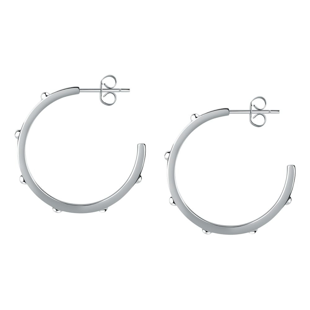 حلق نسائي باللون الفضي الغني من ماركة موريلاتو مصنوع من الستانلس ستيل. يتميز الحلق بتصميمه الأنيق والعصري و الحلقات المرصعة بالكريستال مما يضيف لكِ إطلالة ناعمة وجذابة. عند الطلب يتم شحنه بغلاف أنيق صُمم مخصوص للمنتج.