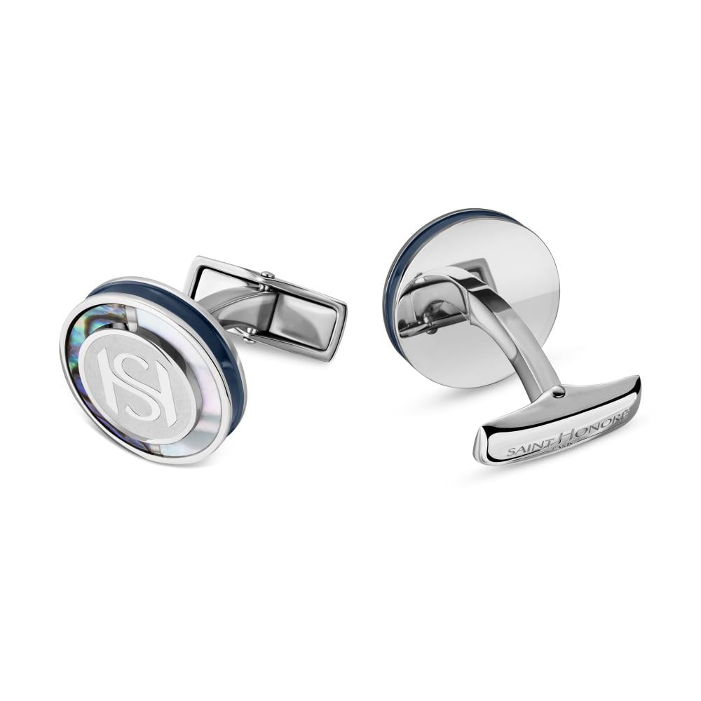 كبك من الؤلؤ من سانت نوريه الرجاليه أزرار أكمام من عرق اللؤلؤ - حيث تلتقي الفخامة والرقي، لتعيد تعريف الرقي. تتميز هذه الأزرار بلمعان رائع من عرق اللؤلؤ الطبيعي، مع حشوة من المينا البحرية على الجانب، مما يضفي عليها لمسة من الأناقة والرقي الخالدة.